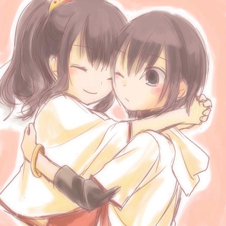 弟に抱きつく姉。よく抱きついてるの描きます。